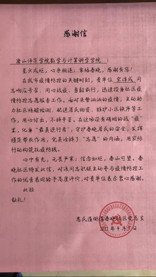 社区防疫任务非常艰巨,刚开始的时候总会碰到各种难题,宋老师争做社区智囊团,大胆献计献策,从“核酸如何做”,到“小区巡逻如何分配”,宋老师充分发挥自己的专业优势,提出自己的设想建议,为社区核酸检测井然有序,社区繁荣安定贡献自己的一份力量。