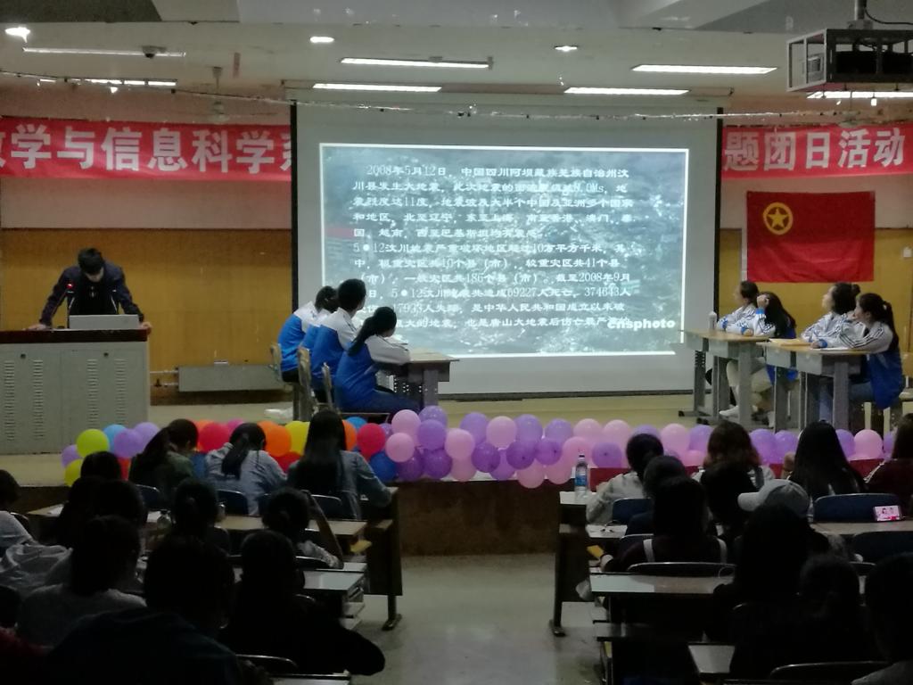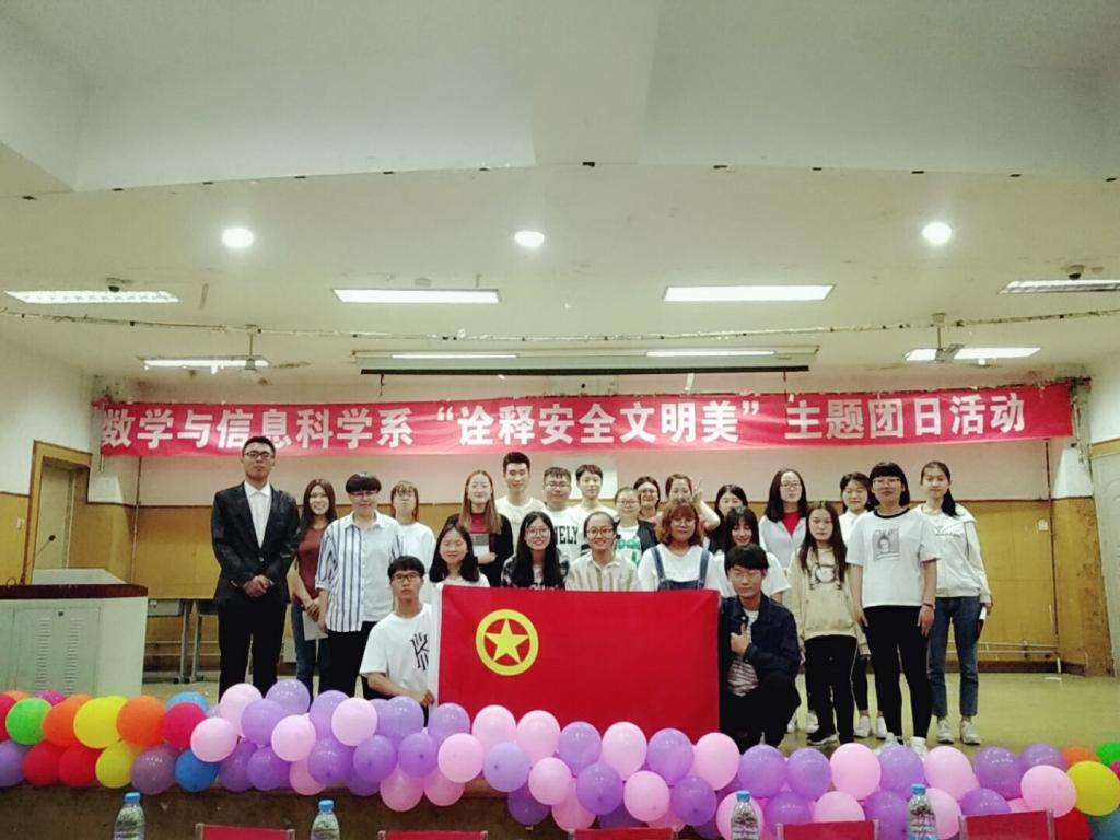 为了增强同学们的安全意识,学习更多安全知识,5月12日,数学与信息科学系在第九阶梯教室举行以“诠释安全文明美”为主题的团日活动。我系全体团干部、大一员工参加了本次活动,大二各班团支书出任此次比赛的评委。