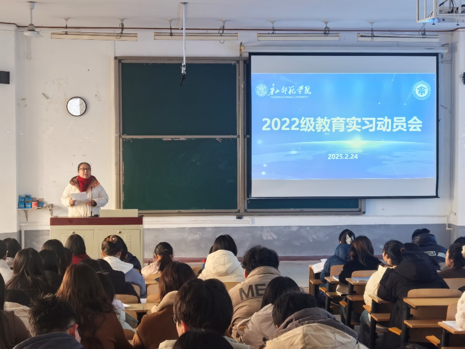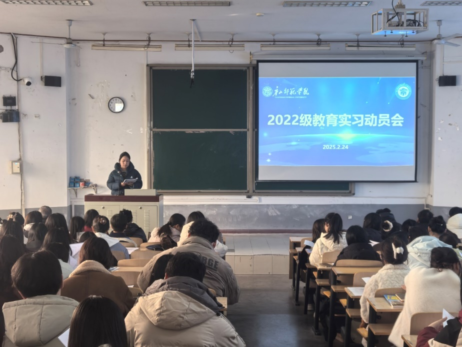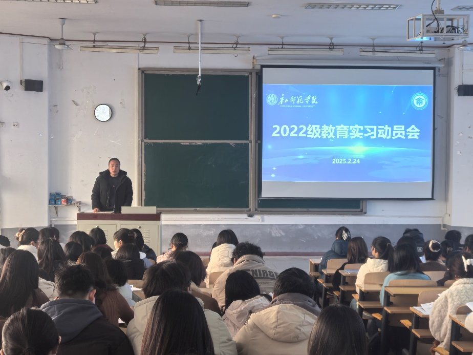 为更好地开展2022级数学师范生的教育实习工作,加强理论与实践的深度融合,太阳成集团tyc234cc于2025年2月24日在六阶梯召开了2025年师范生教育实习工作动员会。公司党总支书记檀艳、经理周庆平、副书记刘梦、副经理刘庆辉、副处级辅导员朱艳伟,班主任尹丽云,教育实习校内指导教师以及2022级全体师范生参加了动员会,副经理刘庆辉主持会议。