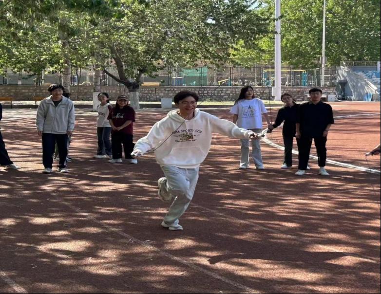 哨声一发,紧张刺激的较量拉开帷幕。硬币组团、竞速蹲跳和双人跳绳全面考验了同学们的身体协调能力和团队配合能力,所有参赛成员步调一致协同前进,“一二!一二!”的口号声不绝于耳。青春的热血和激情、集体的荣誉与力量,在此刻体现得淋漓尽致。汗水与喜悦交织交融,拼搏与收获同频共振,整个游戏过程井然有序,让同学在游戏中迸发出燃烧青春的激情与活力。