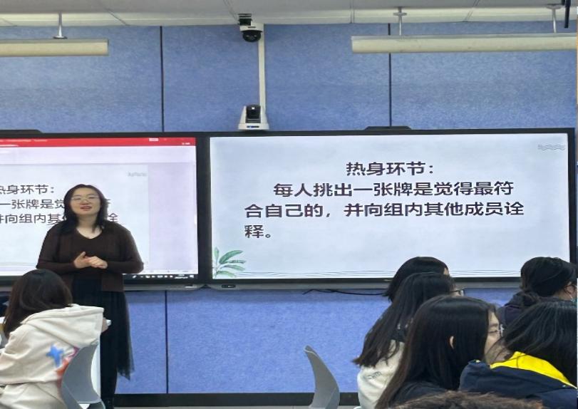 孙芳老师邀请23级各班班委挑选出符合自己的OH卡牌,并向其他人诠释为何自己符合此牌。班委们以OH卡牌为依托开展小组讨论,探讨如何在本班开展学风建设相关问题。檀艳书记、王芳副书记和王玉真老师分别参与到同学们的圆桌会议中,认真倾听同学们的想法,与同学们共同探讨学风建设在各个班的开展的最佳方案。同学们积极发言,分享自己的想法和见解,同时指出自己所在班级目前存在的学风问题,提出解决当前班级问题的学风建设方法,利用新颖的方案和奖惩措施来建设好班级,笃学奋进创学风,躬行致知树新风。檀艳书记强调班干部在班级中的核心作用,以及如何严格抓好班级学风建设,并强调必须高度重视班级学风建设。
