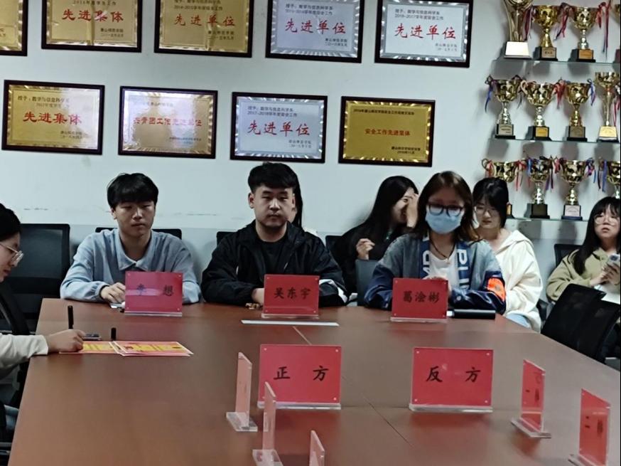 辩论伊始,双方立论陈词,并结合典型事例进行分析概括,进而双方选手就辩题展开深层次的辩论。辩论过程中,选手们雄辩滔滔、妙语连珠,台下同学凝神聆听,掌声不断。如果是立论陈词是前调,那么提问环节便是使现场的气氛热起来,让同学们快速投入进比赛中。你看!各辩手以沉稳的心态面对对方发来的提问,并极快地思考问题回应对方,以使对方找不到我方的破绽。在下一环节自由辩论时,双方辩手引经据典,举例示范,赛场上的气氛更是达到了高潮,赢得评委和现场观众的热烈掌声。唇枪舌剑争高下,这是一场没有硝烟的战争,这是一场刀锋相见的博弈,这是一场各不相让的对局。经过激烈的角逐,22级数本三班代表队获得了第一名。最后由葛浍彬学姐对本次辩论赛进行总结,辩论不是为了争对错或输赢,而是以辩论的形式进行沟通和交流,鼓励辩手们将滔滔雄辩保持下去,辩出风采,辩出精彩。