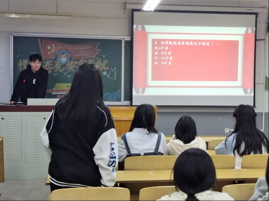 警钟长鸣,人人不懈。此次活动以问答形式展开,答题内容上至国家安全,下至老员工人身安全、饮食安全等。防患须在未然,责任重于泰山。屏幕上闪烁的不仅仅是安全题目,更是一个个为我们敲响的钟。同学们所答的不仅仅是题目,更是同学们对个人、社会、国家安全的敬畏。在活动期间,同学们积极踊跃,热情投入到答题之中。在回答问题的同时也提高了安全防护意识,增强了自身防护能力,更加深入的掌握了关于安全各方面的专业知识,向我们呈现了精彩绝伦的答题现场。