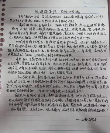 理想之光不灭,信念之光不灭。此次“踏雨清明,缅怀烈士”主题征文活动一方面重温了革命历史、缅怀了革命先烈、传承了红色基因,感受并学习了革命先烈对党、对国家的忠贞和厚重的家国情怀,引发了同学们强烈的共鸣。另一方面帮助同学们从红色故事中学到的知识,转化为奋斗的动力,努力学习好专业知识,积极向上,做新时代的追梦人,将红色基因在灌注于自己的一言一行中,从而在奋斗中书写新时代的史诗!