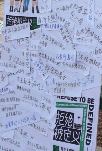 “你这么特别,别人却只关心你漂不漂亮。”这个社会给女性的标签太过繁多。可是,女孩不必一定要长成玫瑰,如果愿意,只需做自由而热烈的自己。为了让女生们远离被定义产生的焦虑,摆脱同学们对女性标签的认知,数计院员工会于3月7日在南苑师魂处进行“拒绝被定义,撕掉女性标签”的活动。