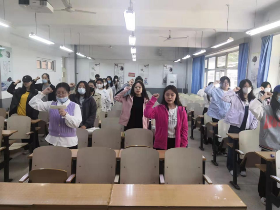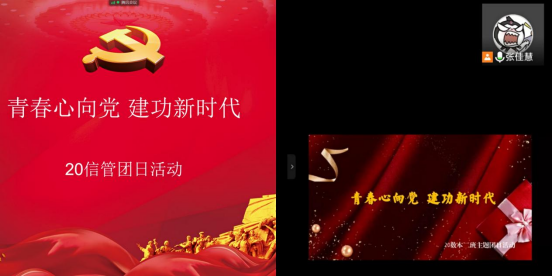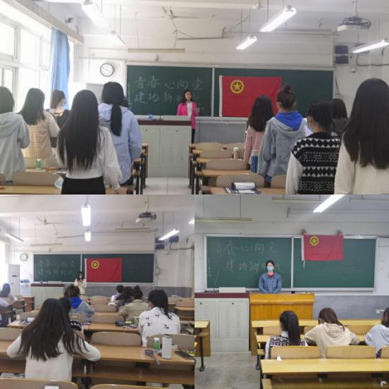 在做好疫情防控的前提下,各团支部针对本班实际情况采取“线上+线下”相结合的方式开展团日活动,活动形式包括进行宣讲、宣读入团仪式、演讲等。同学们观看相关视频,了解到百年历程,在中国共产党的带领下,文明古国实现了从“站起来”、“富起来”到“强起来”,让世界为之瞩目、为之惊叹;知识的互动,夯实了同学们的对党史的了解,也强化了爱党爱国意识;通过演讲,了解到不同同学心中的党的形象,但唯一不变的,是心中对党的崇高的敬意。百年前的五四硝烟已散去,但五四青春的旗帜仍然闪烁着耀眼的光芒,它正在为我们新时代的青年提供引领,标注航向。最后,团员青年们通过唱国歌、重温入团誓词、奏唱团歌进一步坚定理想信念,勇担历史使命,坚定不移听党话跟党走。