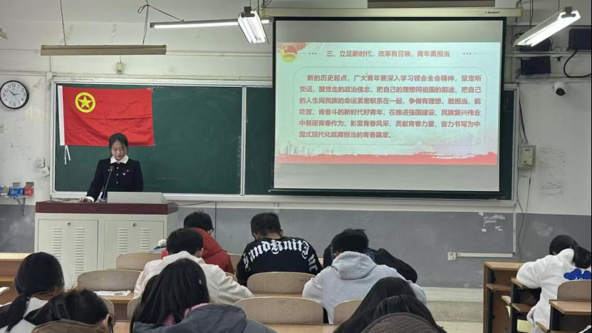 李纯同学就如何学习领会党的二十届三中全会精神为全体青马学员带来了专题培训。培训内容从党的二十届三中全会的重大意义、精神实质和核心要义以及与青年的密切关系三个部分展开讲解。论及党的二十届三中全会的重大意义,李纯同学从其历史意义、理论意义和现实意义三个方面进行详细讲解。李纯同学强调各位青马学员要深刻把握党的二十届三中全会的精神实质和核心要义,深刻感受到改革激荡的磅礴力量。同时,李纯同学通过讲述第28届“中国青年五四奖章”获得者等事例,号召青年要深入学习领会全会精神,争做有理想、敢担当、能吃苦、肯奋斗的新时代好青年,奋力书写为中国式现代化挺膺担当的青春篇章。