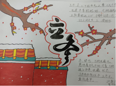 五彩斑斓的画笔在同学们手中舞动,如精灵在纸上跳跃。从构思版面到勾勒线条,从挑选色彩到精心涂抹,每个步骤都倾注着同学们的热情与专注;每个图案都凝聚着同学们的巧思与智慧。诗句巧妙地融入手抄报中,娟秀的字体搭配着古风的插画,让手抄报的意境更加生动地展现在大家面前。每一张手抄报都是一个小小的世界,承载着对寒露与立冬这两个节气的独特理解。