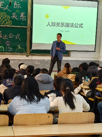 王鸿钰老师通过分享自身的求职故事和亲身生活经历幽默风趣地引入主题,并从“老员工活中人际关系建立的重要性”“建立良好人际关系的方法”“建立良好人际关系的关键技巧”三个方面展开讲解。王老师引用通俗易懂的事例和中外著名心理学理论,引导同学们正视心理压力,积极应对学习生活中的挫折与挑战,实现身心健康发展。他也指出良好的关系是成长的养料,能够助力个人成长,积累人脉资源。这番话也让同学们更深入地了解建立人际关系的重要性。