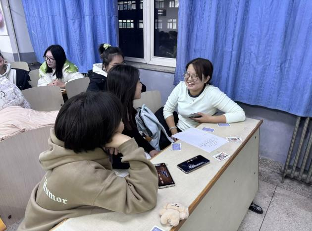 挑战最强大脑,开启思维风暴。每位同学需巧妙运用心理战术与精准的卡片计算,判断上一位出牌者的牌面真假。整个过程充满悬念与挑战,同学们之间相互交流、分享策略,大家在竞争中合作,在合作中竞争,彼此的距离也在欢声笑语中逐渐拉近。在这场紧张刺激的游戏里,每一次出牌都像是一场心理博弈的对决。无论是在激烈的牌局中,还是在轻松的交流时刻,大家都尽情享受着这场思维与情感交融的盛宴,让思维的火花在碰撞中愈发绚烂,让校园生活增添了一抹绚丽多彩且难忘的亮色。