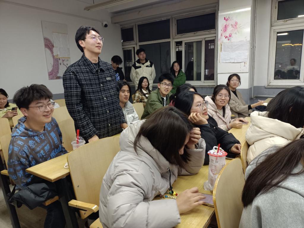 一道道妙趣横生的数学谜题在大屏幕上徐徐展现,涵盖数学概念、几何图形、运算规律等多个知识板块,巧妙地将数学知识与趣味谜题融合。同学们三五成群,围坐在一起热烈讨论,思维的火花在交流碰撞中不断绽放。面对“五、四、三、二、一,打一数学名词”这类经典谜题,大家反应迅速,很快便猜出“倒数”这一答案;“医生提笔,打一数学名词”等问题也激发了同学们的钻研热情,同学们凭借敏锐的思维和丰富的知识储备,准确说出“开方”,赢得阵阵掌声。