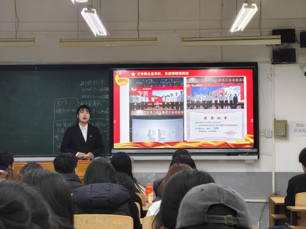 青春同行心向党,团聚思变向未来。各团支部书记以“述职评议”为核心形式,围绕党的二十大精神学习、主题团日活动开展、志愿服务成果、支部特色建设等内容进行汇报展示。团干们通过PPT、数据图表、影像记录等形式,全面梳理支部工作成效,剖析存在问题,并提出下一阶段改进方向。2022级数本1班团支书华赟淇以“四大建设”为亮点,展现了党支部在逐梦建设中的引领作用;2023级信息管理与信息系统团支书郭祎灿则聚焦“党性锤炼+坚守初心”融合模式,呈现了团支部前行道路上的创新活力;2023级数本3班团支书郭爱欣坚守学习风采与文体活动双向前行,表现团支部不断前行的追梦之路。