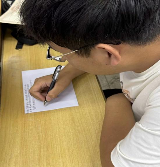 活动现场,在主持人引导下,“心理密语接龙”游戏火热开启。同学们围绕日常学习生活中的情绪场景,迅速写下“考试失利陷入沮丧时”“被人际关系困扰感到无助时”等小贴士前半句。随后,大家发挥创意与同理心,用温暖智慧的文字续写后半句。有人写道“当你在考试失利陷入沮丧时,不妨把它当作发现漏洞的契机,整理错题再出发”,还有人补充“被人际关系困扰感到无助时,真诚沟通或许能打破误解的迷雾”。字里行间,既展现出同学们对心理健康问题的深刻思考,更传递出彼此间相互支持、关爱的真挚情谊。