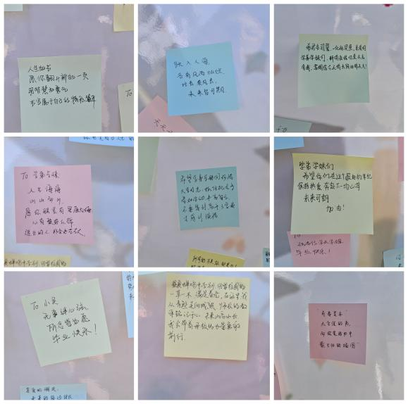 他们将对母校的不舍、对未来的期许诉诸笔端,一张张满载深情的便签不仅成为青春记忆的“存档窗口”,更化作学弟学妹们字里行间汲取奋进力量的精神养分。