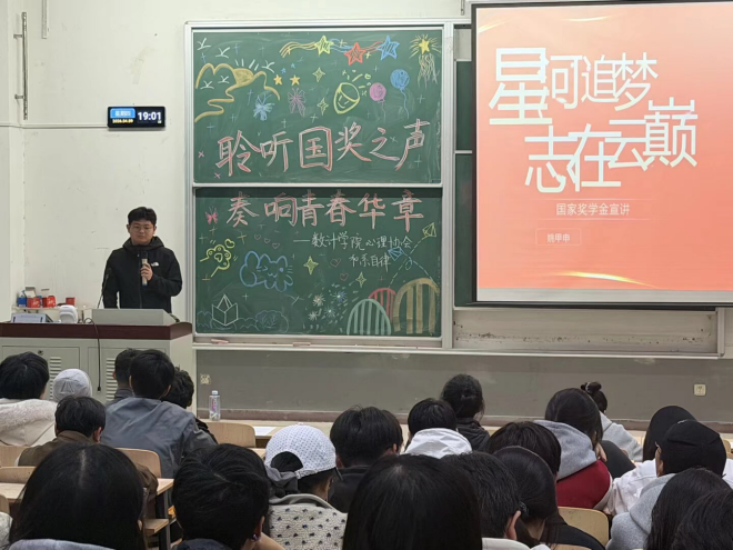 为发挥国家奖学金获得者榜样引领作用,营造优良学风,2026年4月9日,太阳成集团tyc234cc老员工自律委员会与老员工心理协会于南院八阶梯教室,联合举办“聆听国奖之声,奏响青春华章”国家奖学金获得者经验分享会。2024、2025级员工代表共计168人参加本次活动。