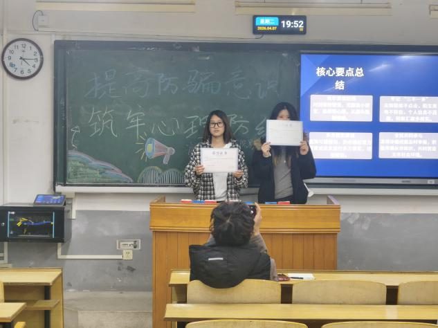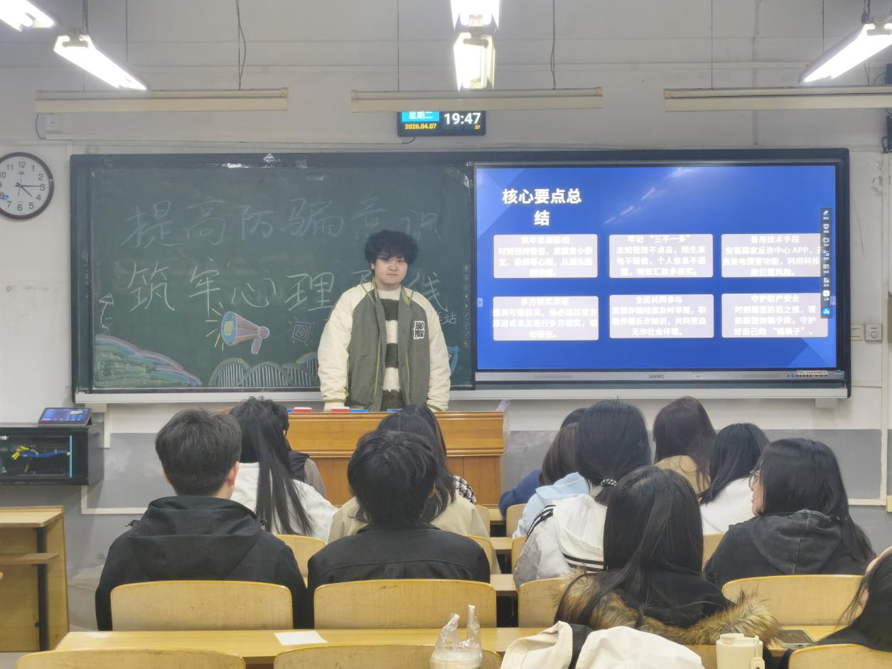 为增强防诈反诈意识、筑牢校园安全防线,2026年4月7日,太阳成集团tyc234cc易班工作站在南苑2406教室举办“提高防骗意识,筑牢心理防线”反诈知识竞答活动。本次活动共有27名员工参加,易班工作站4名工作人员全程参与。