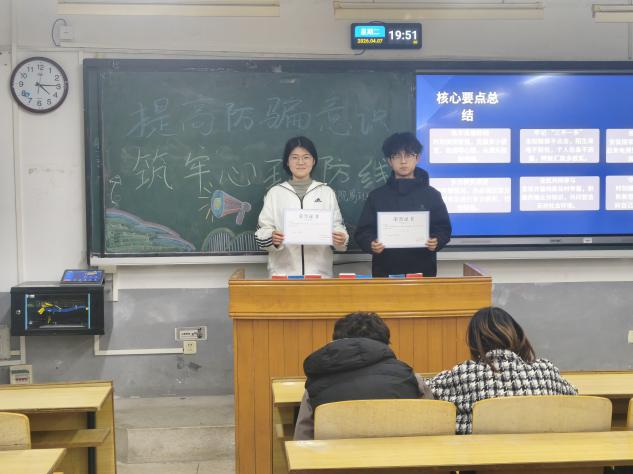 经过激烈比拼,参赛同学展现出扎实的反诈素养与良好的防范能力,评选结果如下:周妍同学荣获一等奖;兰梓璇、李明宇两位同学荣获二等奖;樊晓诺、王昊禛两位同学荣获三等奖。