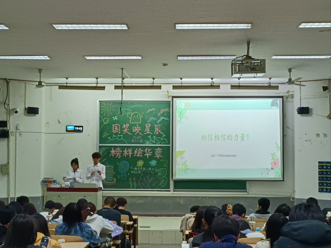 活动现场,2022级数二班代禹婷首先带来她的分享,结合自身成长经历,聚焦学习方法、时间管理、心态调整等关键方面,分享了高效学习、合理规划时间、从容应对学业压力的实用经验,以自身求学实践为参考,为同学们破解学习难题、明晰学习思路提供了切实指引。随后,2022级数一班华赟淇上台分享,围绕目标规划、竞赛实践等内容,讲述自身深耕学业、参与竞赛的成长故事,传递脚踏实地、积极进取的学习态度,鼓励大家树立理想、突破自我,在学习与实践中不断提升综合能力。