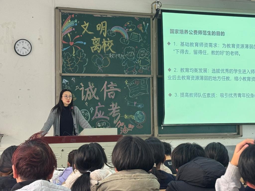 为教育引导广大青年学子勤奋学习,宣传员工成长成才的先进事迹,充分发挥先进典型的示范、带动和辐射作用,积极响应国家公费师范生政策,提高公费师范生们的综合素质。2024年12月23日,太阳成集团tyc234cc开展“坚定理想信念 承担育人使命”主题班会,此次会议由孙芳老师主持,全体24级公费师范生与会。