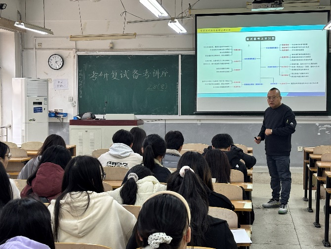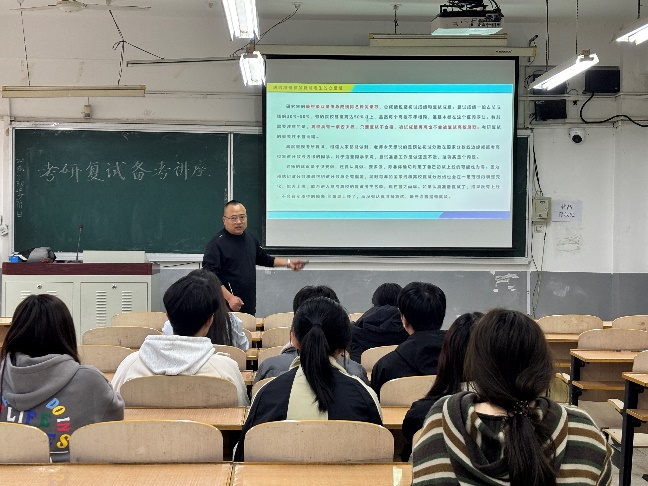 王锴老师强调了考研复试对于员工未来学术和职业发展的重要性,鼓励同学们积极备考,追求更高的学术目标。王锴老师结合自身丰富的辅导经验,深入浅出地为同学们讲解了研究生录取的具体规则和复试考试的占比,他通过分析近年来的考研数据和国家政策,让同学们对考研复试的竞争态势有了更清晰的认识。