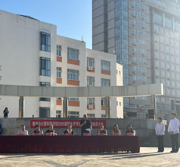 仪式启幕,共赴新程。周庆平经理代表公司向全体新生致以诚挚欢迎。面向新生,周经理提出三点殷切期望:一是树立“大数学”视野,既要深耕专业理论,也要关注人工智能、大数据等前沿领域的融合应用;二是培养“问题意识”,主动参与科研项目、学科竞赛,将课本知识转化为实践能力;三是坚守“数学精神”,以严谨态度和坚韧毅力攻克学习难关。教师代表朱艳伟结合教学经验,鼓励新生适应大学节奏,实现“三个转变”:被动接受转主动探索、单一思维转跨学科融合、知识积累转能力提升。