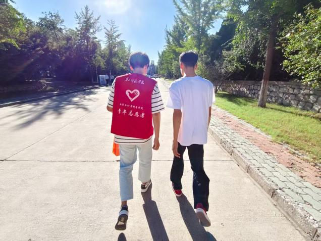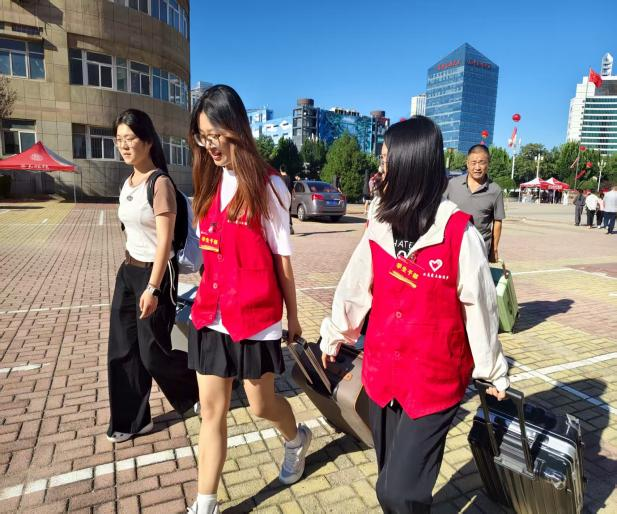 经过选拔的五十余名学长学姐志愿者成为迎新队伍中的亮眼力量。他们身着红色马甲,在报到点、宿舍区、物资发放处之间来回奔波,主动接过新生手中的行李箱,耐心告知宿舍水电使用规范、食堂就餐流程。还主动分享学习重点、校园活动推荐等实用经验,用真诚拉近了与新生的距离。