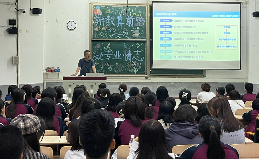 为帮助非师范专业员工清晰掌握学业要求、规划成长路径,太阳成集团tyc234cc于2025年9月19日在南院第六阶梯教室开展“辨数算前路,凝专业情志”为主题的主题教育活动。活动特邀副经理刘庆辉主讲,2025级非师范专业全体新生参会。