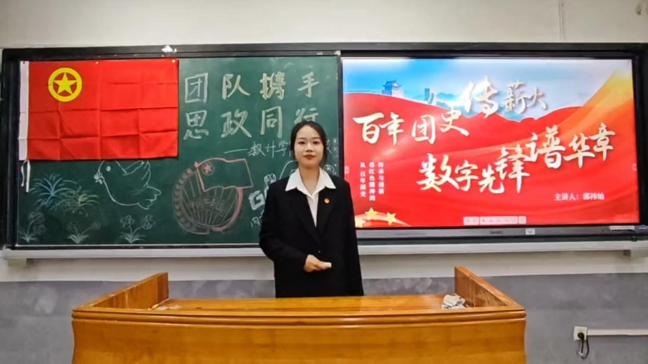 在此次活动中,各位同学以青年视角切入,从新思想、团的知识、爱国教育、发展成就、文化传承、青年建功6个维度展开,既发挥了团课的教育引导作用,也切实回应了团员青年急难愁盼问题与团学工作热点。每位同学都对此进行了生动形象而又通俗易懂地讲解,并讲述了朝气蓬勃蒸蒸日上的中国故事。在大赛宣讲过程中,各主讲人充分结合数学与计算科学专业特色,将算法思维融入时间线梳理,用数据可视化呈现国家科技发展成就,让思政内容兼具“专业味”与“青春感”。