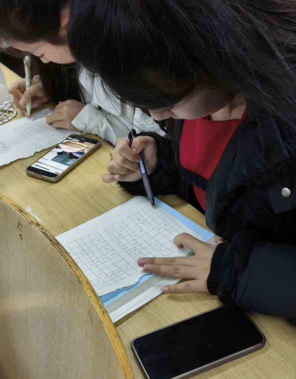 本次活动以“合作解谜”为核心形式,在正式启动前,工作人员先向参赛者清晰讲解了数独规则,并强调了逻辑推理在数学学习与未来发展中的重要性,同时指出“九格数独”是锻炼思维敏捷性与严谨性的有效途径。比赛开始后,各小组迅速进入状态,将基础、中等、高难度三类题目分工合作,解题过程中,小组内部随时互通进度,基础题完成快的同学会主动支援高难度题的同学,分享快速排查的小技巧;遇到共性难题时,虽各小组独立解题,但同学们眼神交流间传递着默契,现场既充满解题的专注感,又洋溢着协作的温暖。