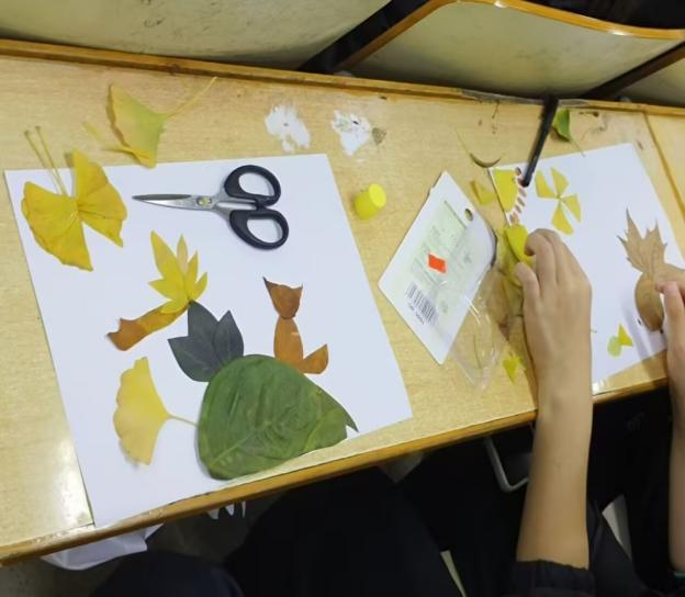 “停车坐爱枫林晚,霜叶红于二月花”。参与同学围绕“秋景”主题,以落叶为画笔,在创作中展现巧思。有的同学将枫叶修剪成飞鸟形状,搭配银杏叶铺就的“金色大地”,勾勒出秋日飞鸟归林的灵动画面;有的同学则用不同色泽的落叶拼贴出校园秋景,将教学楼、林荫道的秋日模样定格在画纸上。创作过程中,大家遵循“不刻意摘叶,保护校园环境”的原则,所用叶片均为自然掉落的素材,践行环保理念的同时,也让每片落叶的“二次生命”更具意义。