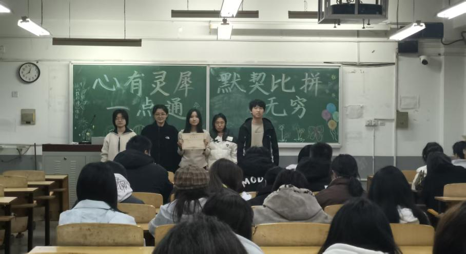 活动以班级为单位组队参赛,设置“你画我猜”“你说我猜”“不能说的秘密”三个层层递进的游戏环节。“你画我猜”中,各班代表化身“灵魂画手”,用粉笔勾勒事物,配合肢体动作传递信息,猜题者争分夺秒抢答。