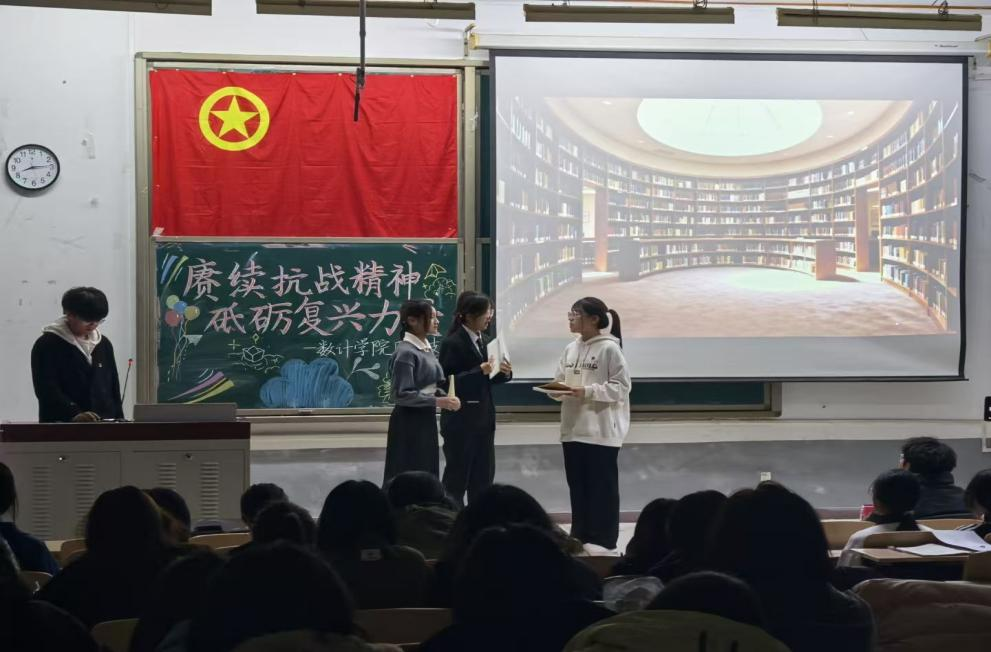 主题创意展示环节,各团支部以多元艺术形式为载体,让峥嵘岁月可感可触、爱国情怀直抵人心。有的支部以情景剧还原西南联大数学家战乱中坚守演算、传知报国的场景;有的支部原创诗歌朗诵,串联烽火岁月与数海求索,抒发报国壮志。