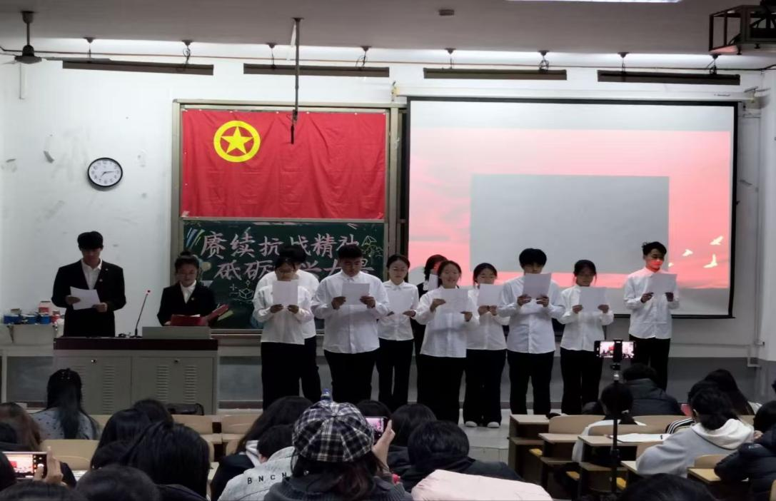 承抗战精神,做时代先锋。各团支部通过主题演讲、情景剧演绎、集体朗诵等形式,生动再现了抗战时期革命先烈浴血奋战的英勇事迹,展现了新时代青年对伟大抗战精神的深刻理解。