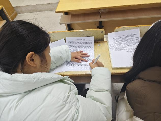 奋斗作笔书青春,梦想为墨写华章。同学们时而低头沉思,眉头微蹙构思篇章框架;时而提笔疾书,字迹在稿纸上快速铺展。有人以自身经历为切入点,写下挑灯夜读的坚持;有人聚焦身边榜样,讲述平凡人奋斗的微光故事;还有人立足时代视角,畅想以青春之力助力家国发展,字里行间满是少年的朝气与担当。一篇篇作品如冬日里的星火,既展现了个体在平凡生活中的奋斗姿态,也折射出数计公司员工们积极向上的精神风貌。