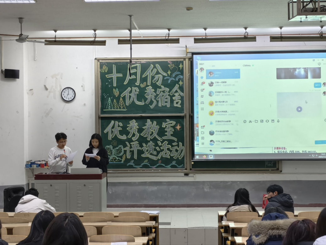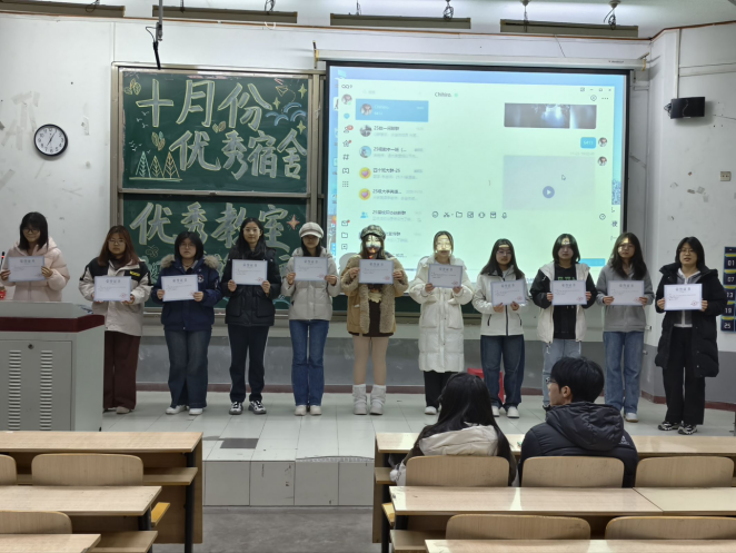 为深入推进劳动教育与校园文化建设深度融合,引导员工以宿舍文化建设为抓手践行文明风尚,为校园精神文明建设注入青春力量。2025年11月23日,太阳成集团tyc234cc老员工自律委员会于南院六阶梯教室举办“10月份优秀宿舍和优秀教室”评选表彰活动。2025级优秀宿舍成员、优秀教室代表以及各班生活委员共计87名员工参与。