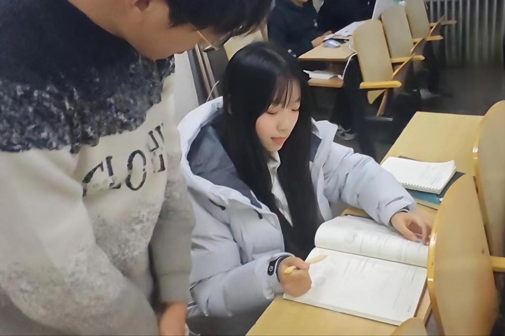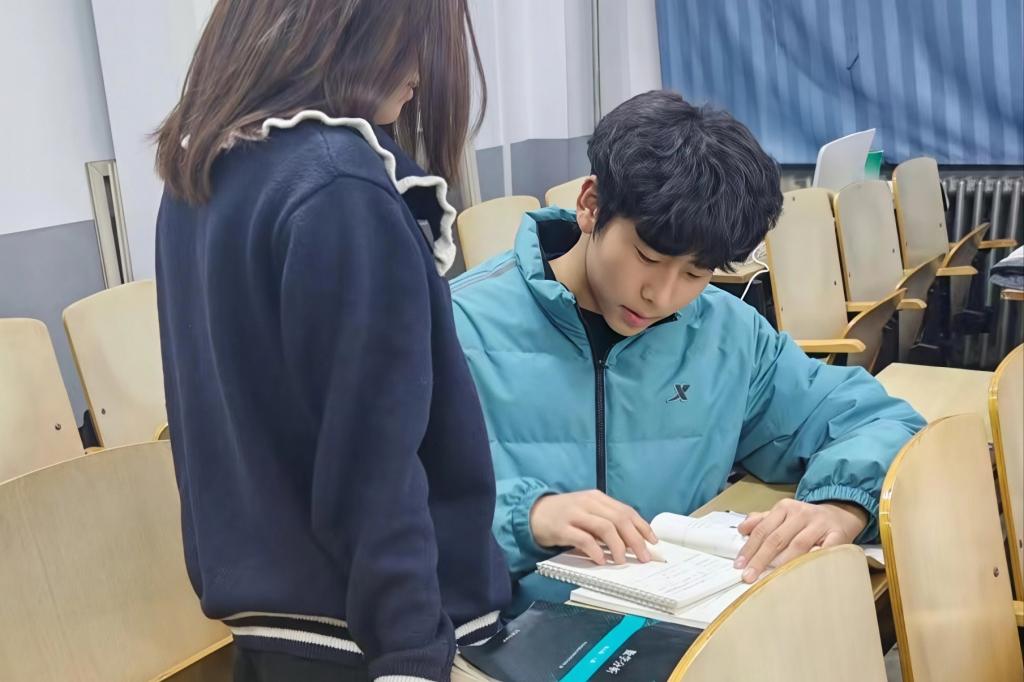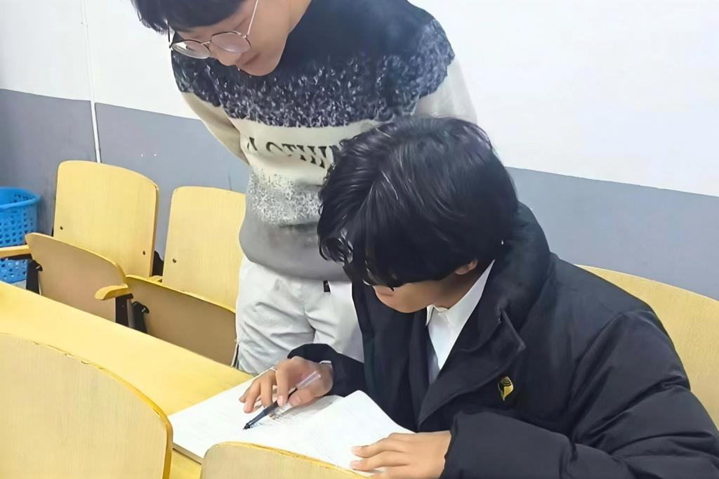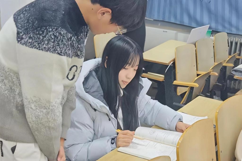 现场辅导,双向受益。大二学长学姐们化身“移动答疑站”,结合自身学习经验,用通俗易懂的语言拆解抽象知识点,手把手演示习题推演步骤,既帮大一新生适应大学学习节奏,也让大二员工巩固知识,实现帮扶双方共同成长,厚植互帮互学的优良学风。